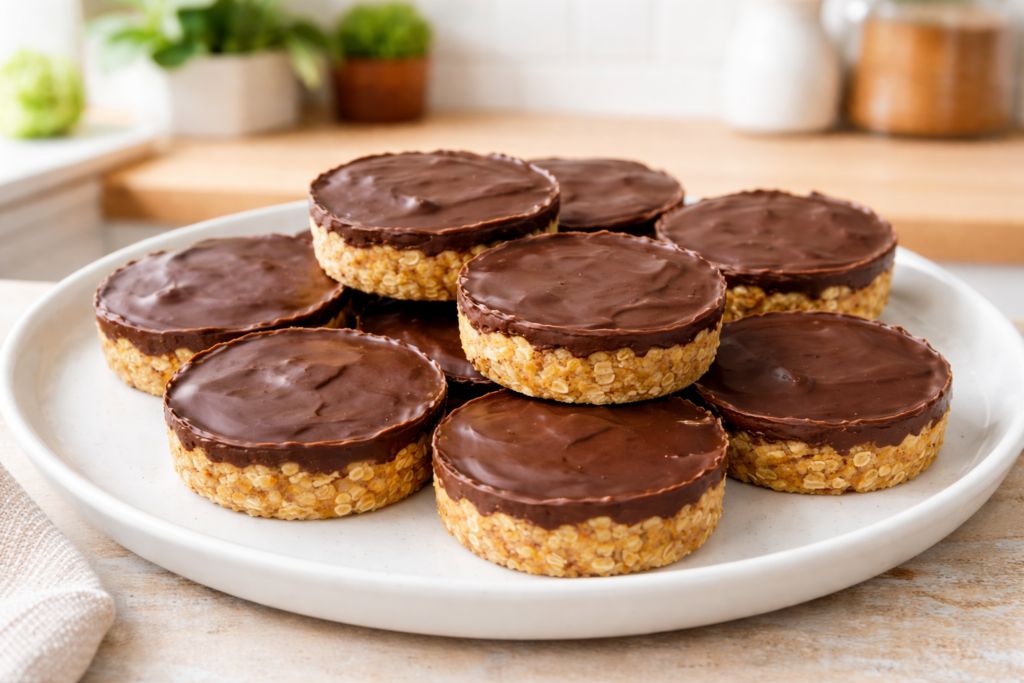 Ces biscuits allient gourmandise et simplicité : rapides à préparer, sans cuisson et avec seulement 4 ingrédients. Ils seront parfait pour remplacer les habituels gâteaux industriels lors d’une collation équilibrée !