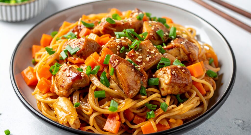 Envie d’un plat gourmand, complet et équilibré ? Ces nouilles chinoises façon faux caramel vont forcément vous régaler ! Ingrédients