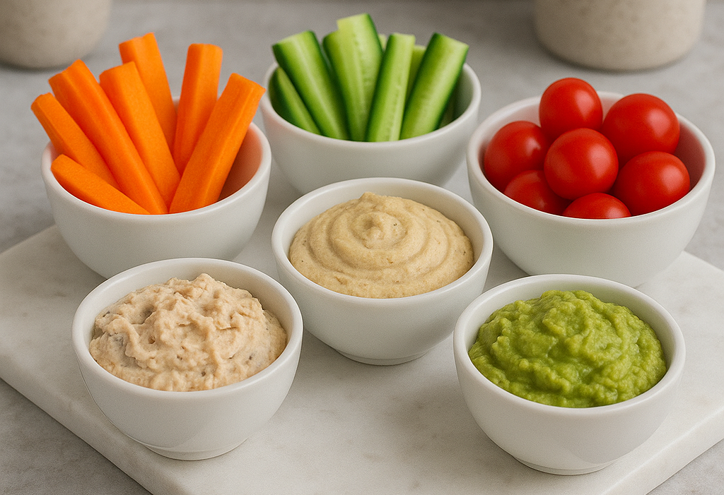 On mise sur les crudités : carottes, concombre et leurs sauces